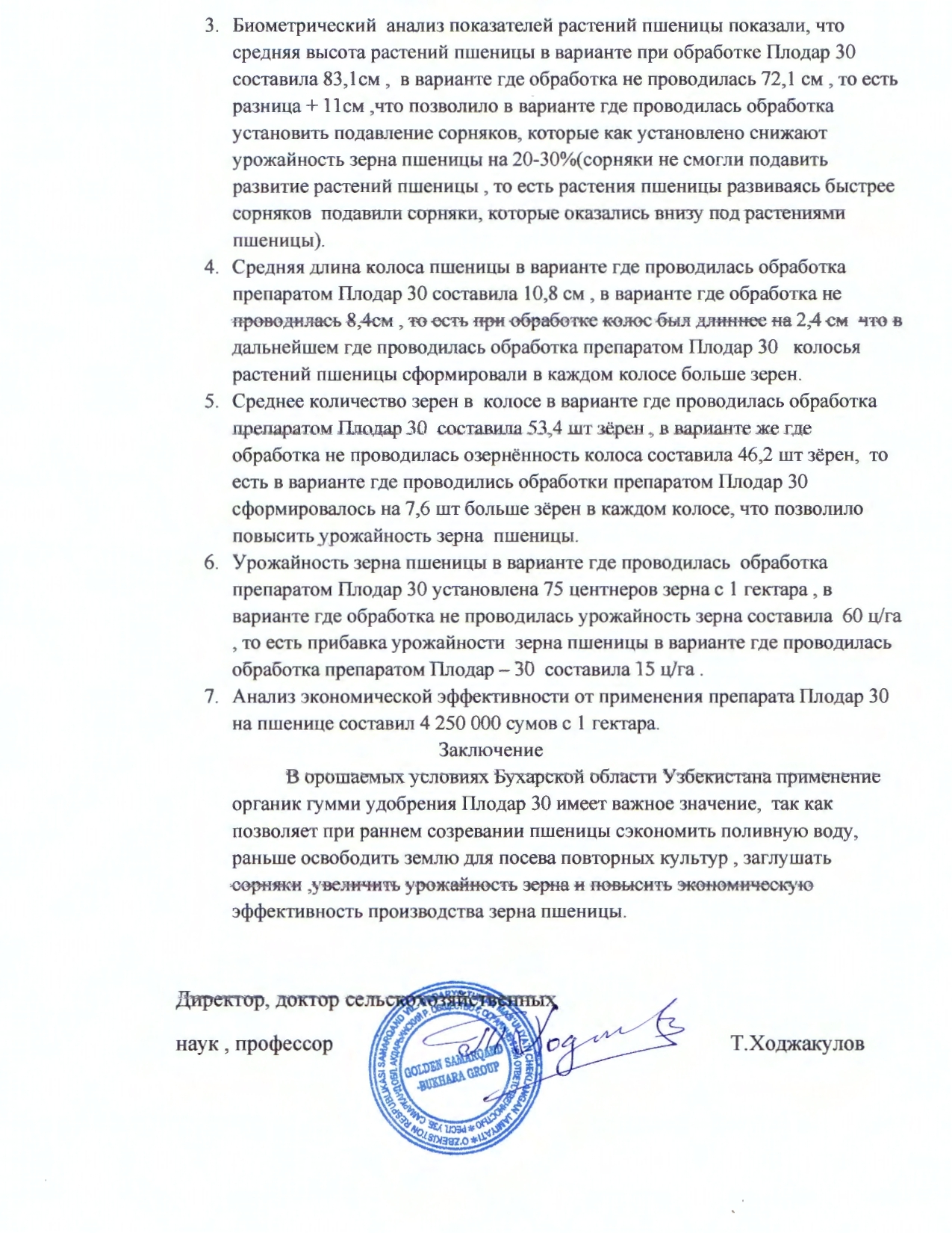 Применение продукта PLODAR показало значительное повышение урожайности, улучшение агрономических показателей и экономическую эффективность в условиях реального производства.